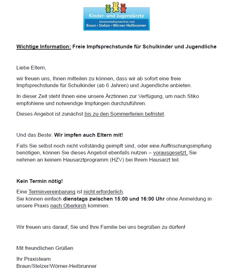 bereits 3 Monate in einer Kinderarztpraxis tätig.